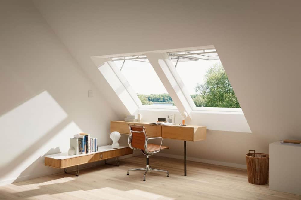 Покривните прозорци VELUX с Горна Ос предлагат панорамна гледка и лесно управление до 45о .
