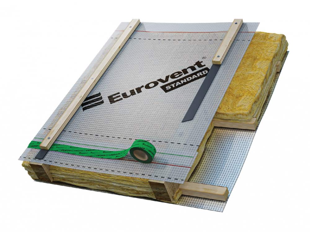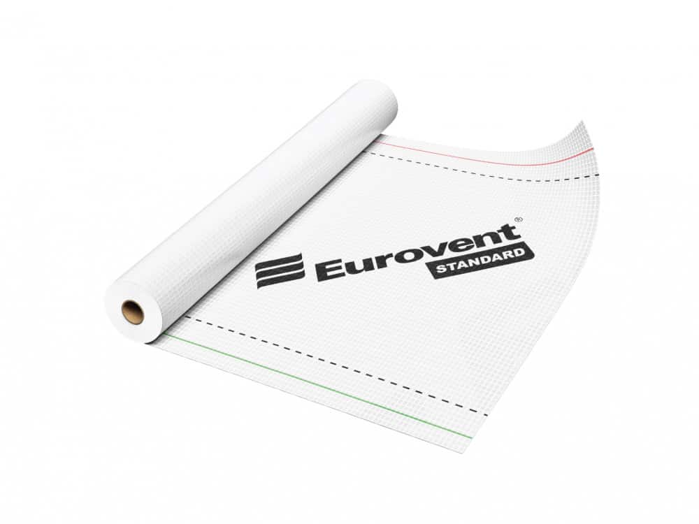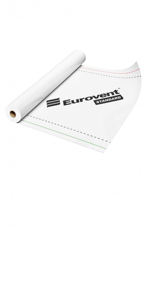 Ветроизолационната мембрана Eurovent® STANDARD се използва предимно като първоначално покритие на вентилирани скатни покриви без топлоизолация. Когато се прилага в изолиран покрив, между фолиото и топлоизолацията (минерална вата) трябва да се запази вентилационен процеп от поне 5 cm. Продуктът не трябва да се монтира директно върху топлоизолацията. Окончателното покривно покритие трябва да се монтира задължително върху двойна ската летви и контра летви.