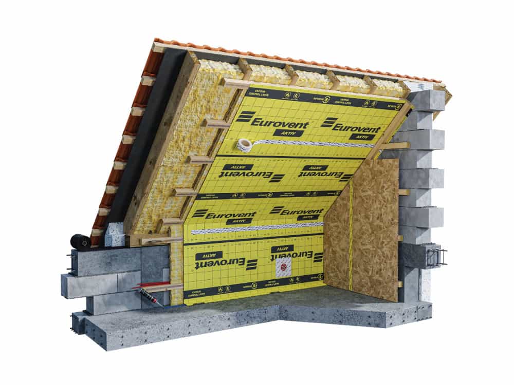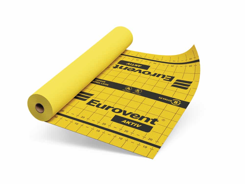 Пароконтрилна мембрана Eurovent® AKTIV се използва в жилищното и промишленото строителство като паропропусклив слой, предпазващ тавана от прекомерно проникване на влага от вътрешността на помещението към топлоизолацията. Благодарение на активните си свойства, тя, наред с другото предотвратява образуването на гъбички и плесени в таванния пакет в резултат на прекомерна влага . Така се предпазва конструкцията от дървен материал против гниене. При полагането му силно се препоръчва да се използва лепилната лента Eurovent® DUO за залепване чрез застъпвания на една ролка с друга, както и за уплътняване на фугите между мембраната и елементите на покривната конструкция. За правилна вентилация на метален покрив тук.