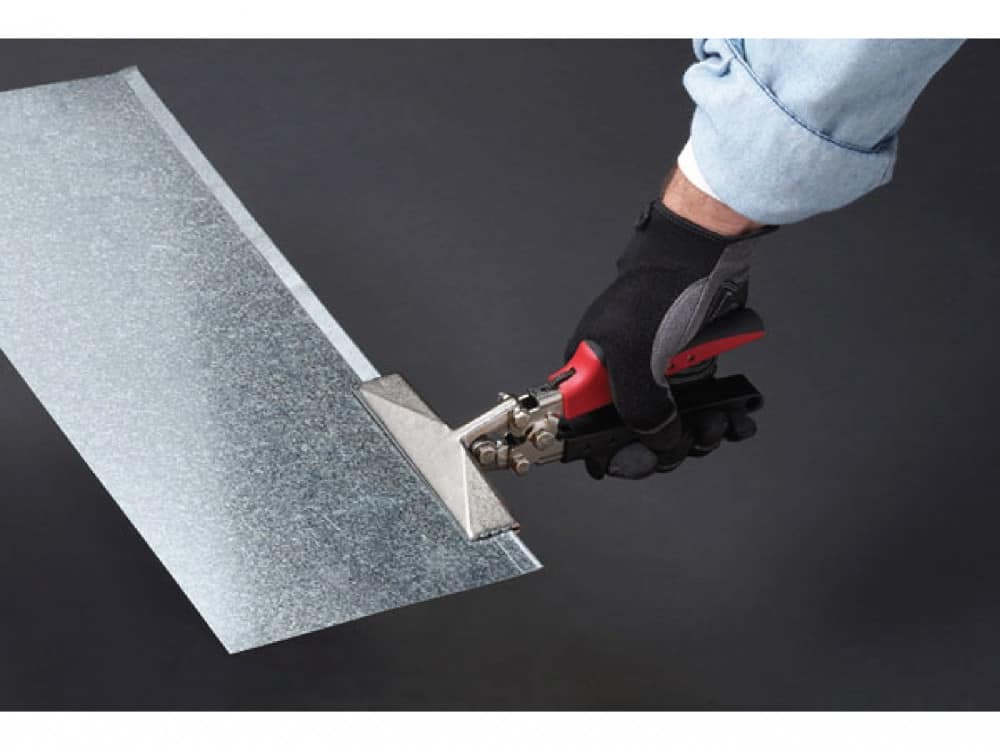 Лесното управление с една ръка, включително лесното отваряне и затваряне на ключалката, винаги оставя свободна ръка за стабилизиране на обработвания детайл от двойка елементи ламарина.