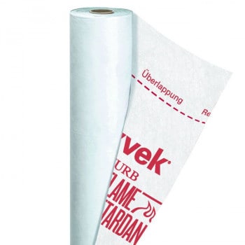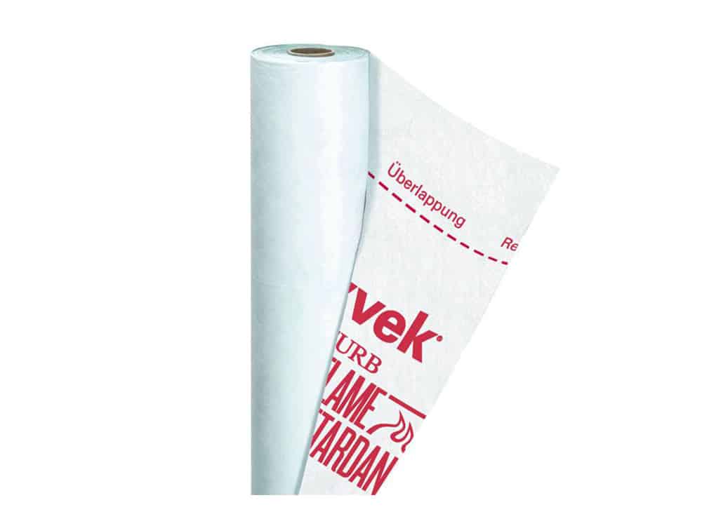 DuPont™ FireCurb носи водонепропускливостта и високата паро-пропускливост на Tyvek материалите, но е усъвършенствана с огнезащитни свойства. Мембраната самоугасва при запалване, а покритието й намалява образуването на дим и горящи капки. Използва се основно за стенна облицовка на всички типове сгради - от бунгала до високи сгради. Полага се от външната страна на изолацията, може да се използва и като решение за вентилируеми фасади и дървени конструкции. Състав: Полиетилен с висока плътност. Функционален слой: 175 микрона Паро-пропускливост Sd: 0,015 (EN ISO 12572 (C) Воден стълб: 1,3 m (EN20811) Реакция на огън: B-s1,d0 (EN13501-1) ако е инсталиран свободно, върху минерална вата и циментови бордове; D-s2, d2 (EN13501-1) ако е инсталиран върху дърво Температурна устойчивост: -40 до +100 C UV устойчивост: 4 месеца без покриване