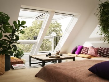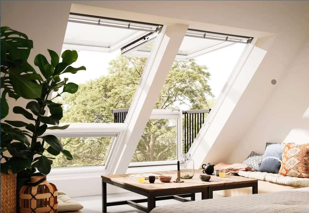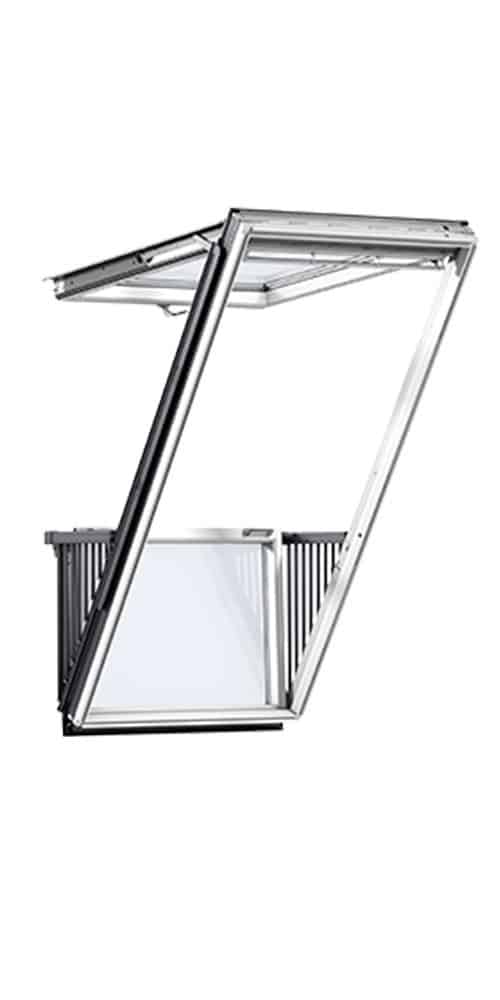 Прозорец-балкон CABRIO® се отваря за секунди, за да могат слънчевите лъчи да влязат във Вашата мансарда. Оригиналният балкон добавя свеж въздух, светлина и прекрасна гледка към дома. А когато е затворен, напълно се слива с равнината на покрива. Нека природата влезе в дома Ви – осигурете си повече естествена светлина и свеж въздух. Насладете се на предимството да имате балкон –VELUX CABRIO® . Той се трансформира от прозорец до балкон за секунди. Горният елемент може да се ползва като класически покривен прозорец. >> Покривен прозорец или балкон – изборът е Ваш.